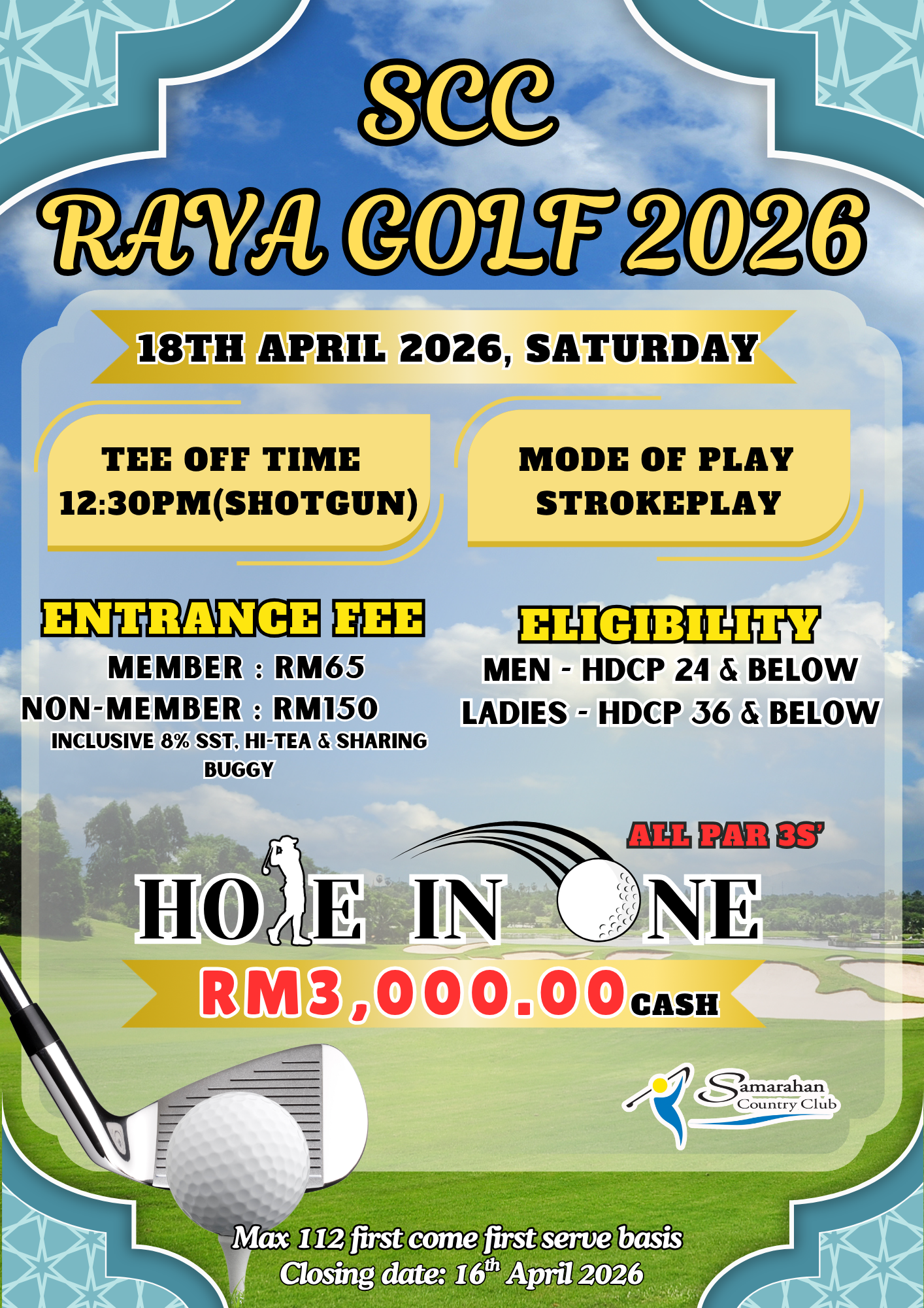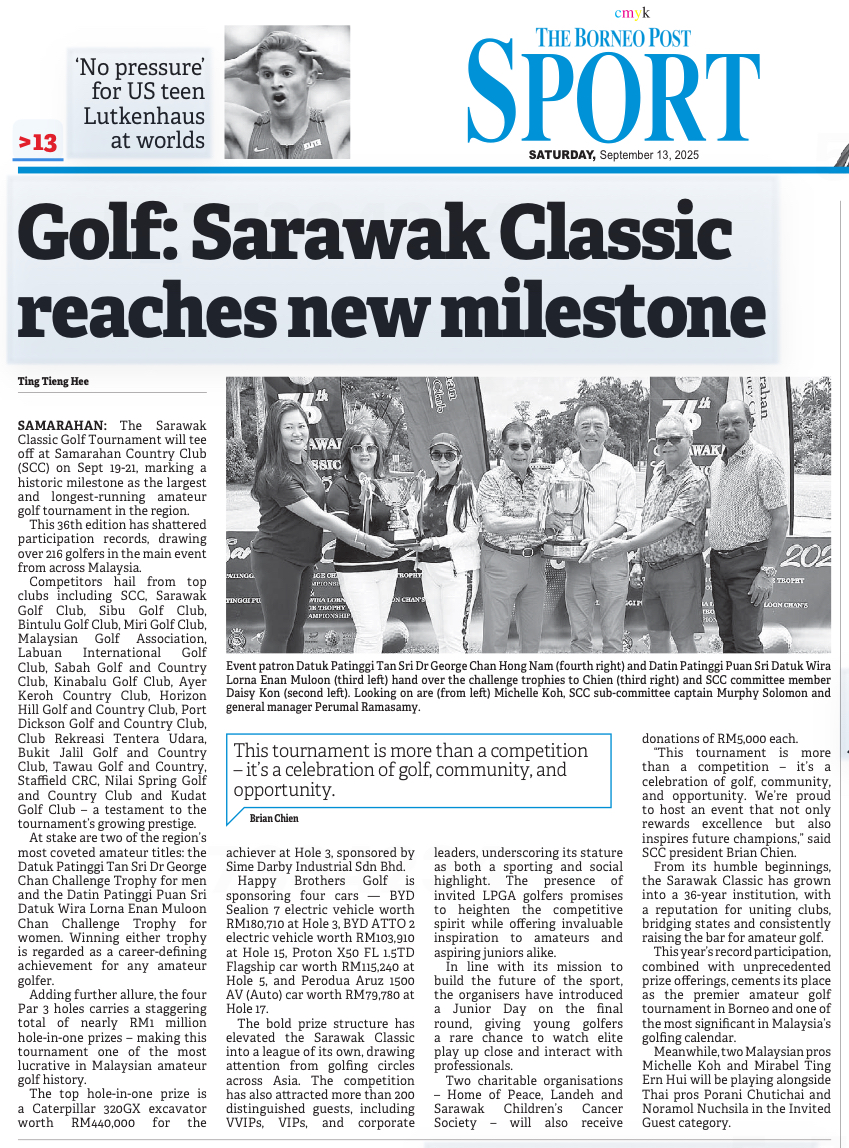 Samarahan Country Club (SCC) is located next to the UNIMAS Campus off the Kuching-Samarahan Expressway, about 10km from Kuching City South. Its 18-holes golf course is an attractive blend of a well-manicured “Garden” nine and old swamp forest “Jungle” nine - once occupied by crocodiles - which ensures a pleasant yet challenging outing.