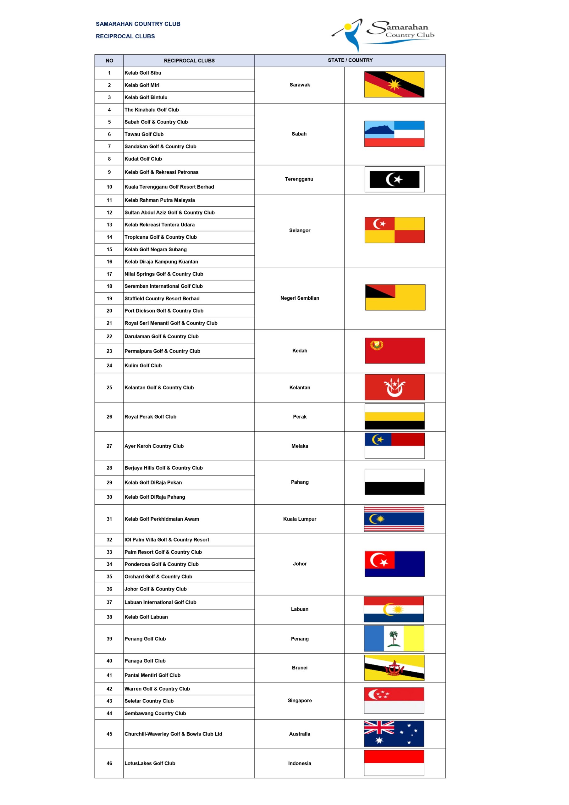 Reciprocal Clubs with Samarahan Country Club: